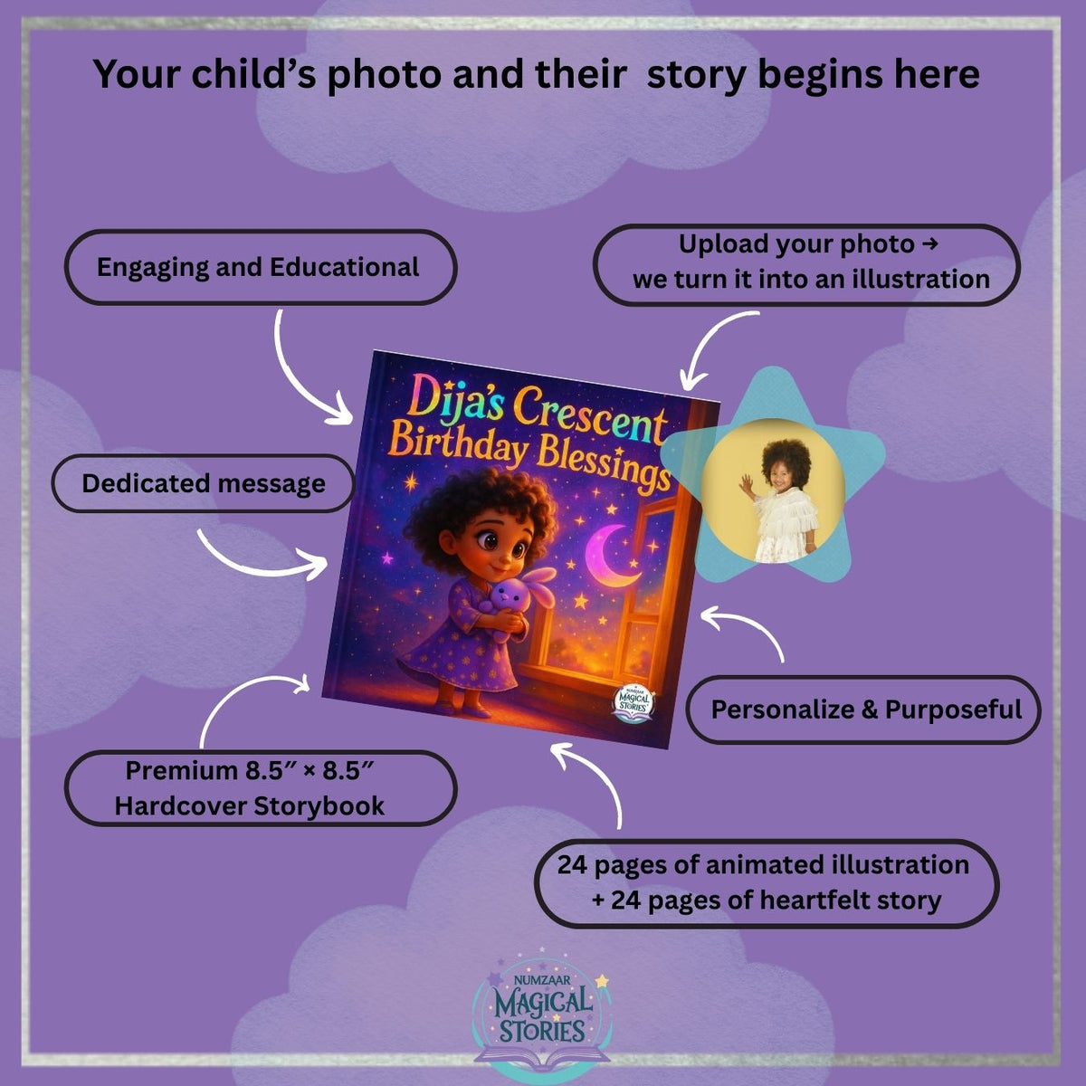 At Numzaar Magical Stories, no two books are ever the same. Each story is crafted around your child’s unique character, values, and cultural background, celebrating who they truly are. From the storyline to the message, every page highlights their individual journey, helping them see themselves as the hero of their own magical world.